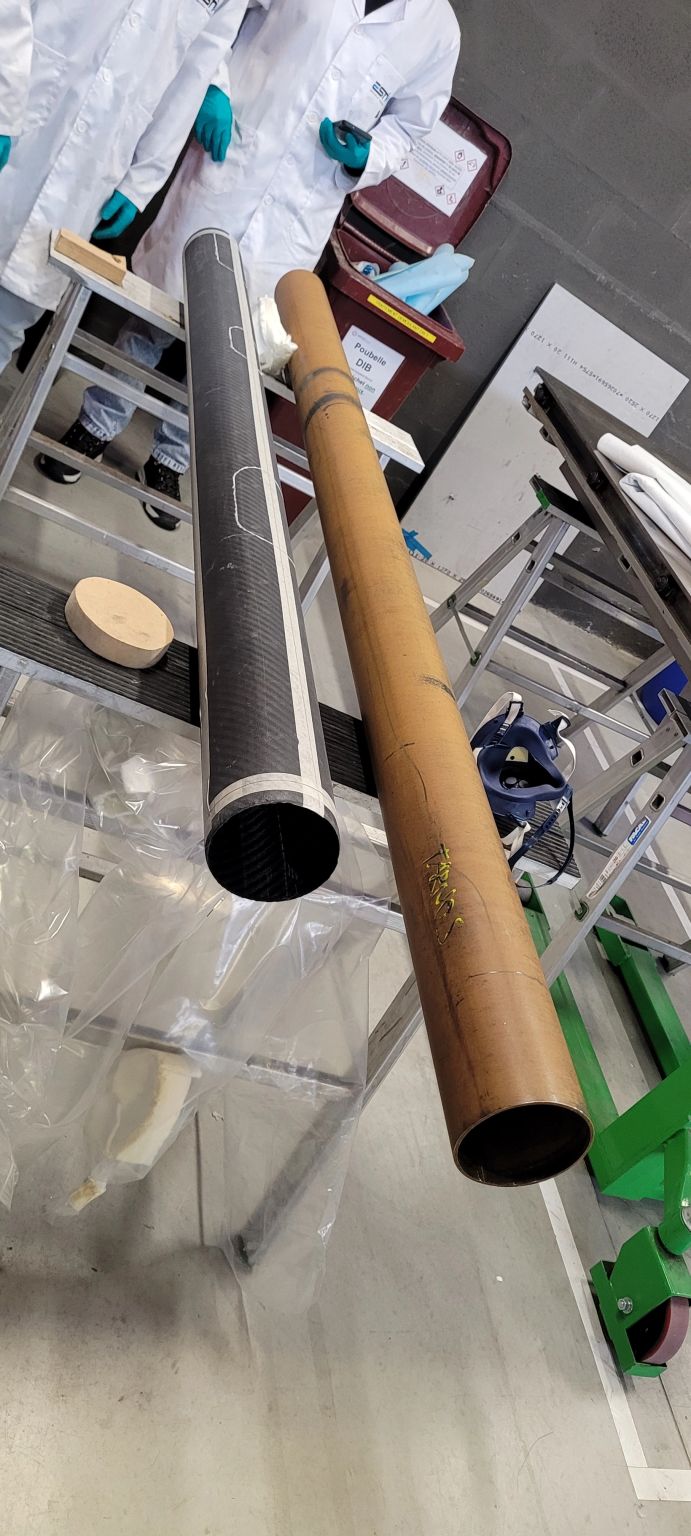 - Arrivée d’un nouveau mandrin permettant de draper une peau carbone plus longue pour la fusée expérimentale.